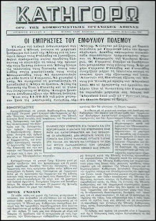 Επίσης να αναφέρουμε ότι στην διπλανή φωτογραφία βλέπουμε την εφημερίδα «Κατηγορώ» που εξέδιδε η Κομμουνιστική Οργάνωση Αθήνας και, αν δεν κάνουμε λάθος, παρόμοιο έντυπο δεν κυκλοφόρησε σε καμιά από τις σκλαβωμένες από τις δυνάμεις του άξονα Ευρωπαϊκές χώρες. Μια εφημερίδα δηλαδή που να καταγγέλλει επώνυμα όσους συνεργαζόταν με τις δυνάμεις κατοχής και ουσιαστικά να λειτουργεί  σαν «λίστα προδιαγραφών».