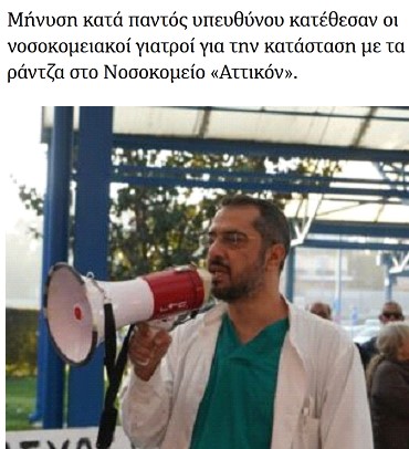 Σε μια κίνηση-σταθμό που αποκαλύπτει το μέγεθος της κυβερνητικής εγκληματικής αδιαφορίας για τη δημόσια υγεία, η Ένωση Ιατρών Νοσοκομείων Αθηνών-Πειραιώς (ΕΙΝΑΠ) και το Σωματείο Εργαζομένων του νοσοκομείου «Αττικόν» κατέθεσαν μήνυση κατά παντός υπευθύνου: από τη διοίκηση του νοσοκομείου και τη 2η Υγειονομική Περιφέρεια μέχρι το υπουργείο Υγείας και την πολιτική ηγεσία του.