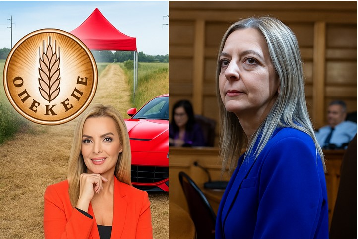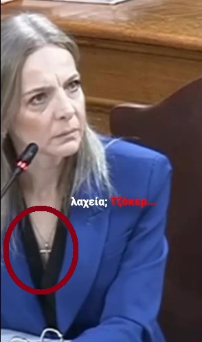 Η ίδια γυναίκα, δύο πρόσωπα. Το ένα για τα κανάλια και τα γλέντια με τις Ferrari, το άλλο για την Εξεταστική, όπου παριστάνει την φτωχή και αθώα αγρότισσα, με βλέμμα «Κύριε Ιησού Χριστέ ελέησόν με» και αμφίεση Μαρίας Λουκά στο νεότερο.