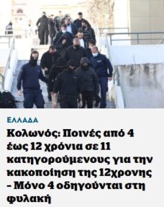 Υ.Γ: Και φυσικά είναι αξιοσημείωτο ότι ενώ δημοσιεύματα μιλούσαν για 213 καθάρματα που βίασαν το κοριτσάκι τελικά ποτέ δεν μάθαμε ούτε τα 11 ονόματα αυτών των σιχαμάτων που καταδικάστηκαν γιατί βίαζαν επανειλημμένος το 12χρονο κοριτσάκι.