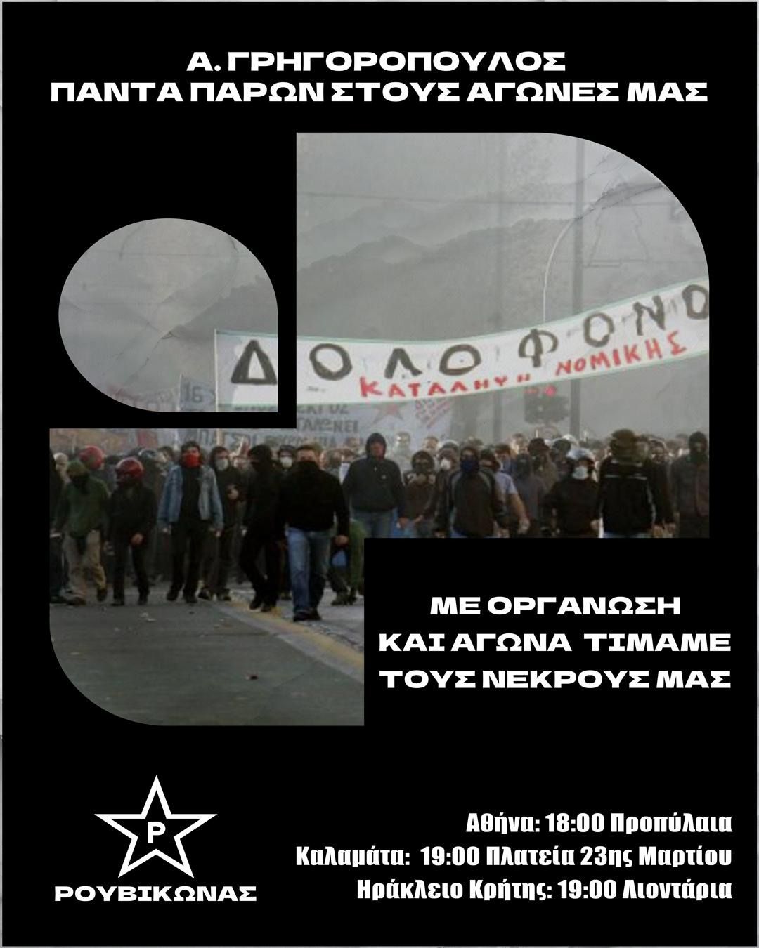 17 χρόνια πέρασαν από τη δολοφονία του 15χρονου αναρχικού μαθητή Αλέξανδρου Γρηγορόπουλου. Ο θάνατός του σηματοδότησε μια νέα περίοδο στην ελληνική ιστορία. Μια περίοδο που ξεκίνησε με την εξέγερση της νεολαίας και στο πλάι της την εξέγερση σημαντικού μέρους της κοινωνικής βάσης.