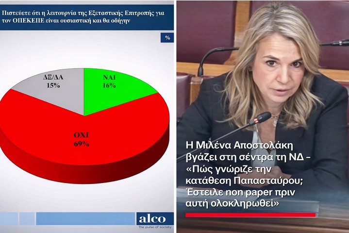 Δεν χρειάστηκε να περάσουν πολλές μέρες για να επιβεβαιωθεί η κοινή πεποίθηση της κοινωνίας. Σύμφωνα με πρόσφατη δημοσκόπηση της ALCO, το 70% των πολιτών εκτιμά ότι η Εξεταστική Επιτροπή της Βουλής για το σκάνδαλο του ΟΠΕΚΕΠΕ θα αποδειχθεί φιάσκο. Και σαν να ήθελε η ίδια η κυβερνητική πλειοψηφία να δικαιώσει αυτή την εκτίμηση, ήρθε η σημερινή πρωτοφανής εξέλιξη να ρίξει βαριές σκιές στην αξιοπιστία της διαδικασίας.