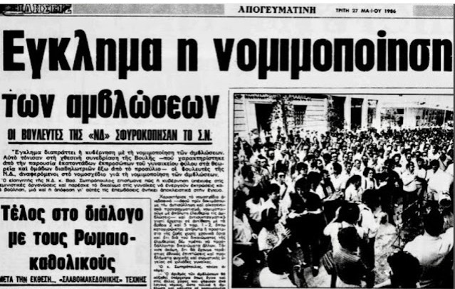 Η ΝΔ του Κωνσταντίνου Μητσοτάκη (πατέρα του νυν πρωθυπουργού) τις πολέμησε λυσσαλέα, καταψηφίζοντας τον νόμο. Η Εκκλησία μιλούσε για «ειδεχθές έγκλημα». Οι εφημερίδες της εποχής έγραφαν για «εγκλήματα νομιμοποίησης» και «συρραφή» της κοινωνίας.