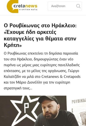 Συνέντευξη στον δημοσιογράφο Μάριο Διονέλλη, έδωσε το μέλος του Ρουβίκωνας, Γιώργος Καλαϊτζίδης με αφορμή την παρουσία του Ρουβίκωνα στο Ηράκλειο Κρήτης και την δημιουργία πυρήνα της οργάνωσης στην πόλη.