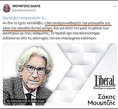 Μετά τους γνωστούς Πρετεντέρηδες, Αδώνηδες και όλο το δεξιό συναπάντημα, εμφανίστηκε σήμερα και ο εργοδότης του Μουμτζή, ο «νονός του νέου Μωυσή», Θανάσης Μαυρίδης. Από το site που διαχειρίζεται, το liberal, φερέφωνο των πιο ακραίων νεοφιλελεύθερων απόψεων της ΝΔ, έσπευσε να υπερασπιστεί τον υπάλληλό του.