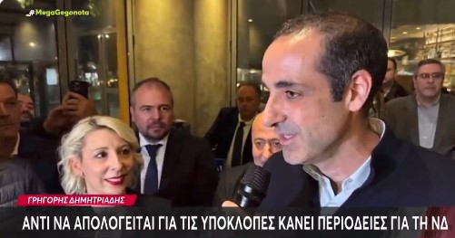 Όπως αποκάλυψε το δελτίο ειδήσεων του MEGA, ο Γρηγόρης Δημητριάδης, παρότι δεν έχει πλέον κανέναν θεσμικό ρόλο, περιφέρεται ανά τη χώρα κόβοντας πίτες Νομαρχιακών Οργανώσεων της Νέας Δημοκρατίας, αναλαμβάνοντας ρόλο κομματικού οργανωτή ενόψει εκλογών.