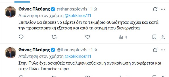 Ο υπουργός Μετανάστευσης Θάνος Πλεύρης θεώρησε σκόπιμο να μας απευθύνει δυο ποστ και ουσιαστικά να μας χαρακτηρίσει άσχετους, με αφορμή πρόσφατη ανάρτηση που τιτλοφορούσαμε: “Τόσο άσχετος είναι ο Θάνος Πλεύρης για την επιστήμη την οποία υποτίθεται ότι υπηρετεί;“