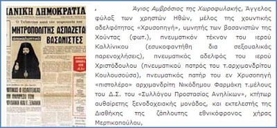 «Πρώτιστα όλων, όταν εντός των τειχών υπάρχουν Έλληνες που καυχώνται ότι είναι ά-εθνοι, ά-θεοι και α-πάτριδες, και η Ελληνική Δημοκρατία ΔΕΝ ΣΠΕΥΔΕΙ ΝΑ ΤΟΥΣ ΑΦΑΙΡΕΣΕΙ ΤΗΝ ΕΛΛΗΝΙΚΗ ΙΘΑΓΕΝΕΙΑ και ΥΠΗΚΟΟΤΗΤΑ, αποστέλλοντάς τους στο πύρ το εξώτερον ως προδότες της Πατρίδος μας, τότε το τέλος της Ελλάδος είναι εγγύς!».