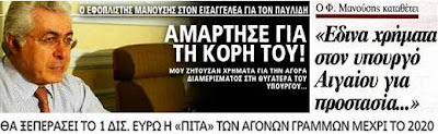 Φ. Μανούσης: «Έδινα χρήματα στον υπουργό Αιγαίου, κ. Αρ.Παυλίδη, για να έχω προστασία!