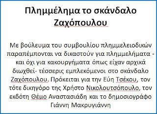 Και ο μεγάλος κερδισμένος απ’ όλη αυτή την υπόθεση ήταν ο «κομιστής». Ο Θέμος Αναστασιάδης, δηλαδή που είχε το «εμπόρευμα» που έκλεψε απ’ την Τσέκου. Και αυτό το «εμπόρευμα» το πούλησε σε πολύ καλή τιμή. Ποια ήταν αυτή η τιμή; Ότι ποτέ δεν μάθαμε τι απέγινε με τα 5.500.000 ευρώ που μέσα σε μαύρες σακούλες κατέθεσε ο κ. Θέμος σε λογαριασμό του στη γαλλική τράπεζα BNP PARIBAS. Κανένας δεν έψαξε από πού προέρχονταν, δεν του ασκήθηκε καμία δίωξη, δεν του επεβλήθη κανένα πρόστιμο. (Υπήρξε μια ενδοεκδοτική κόντρα μεταξύ Αναστασιάδη-Χατζηνικολάου αλλά η προσπάθειες του τελευταίου –απ’ την φυλλάδα του είναι η εικόνα που παραθέτουμε- απέβησαν μάταιες. Το «εμπόρευμα» που είχε στα χέρια του ο Θέμος μπόρεσε να τον ξελασπώσει απ’ όλα τα λούκια).