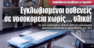 Στα πλαίσια αυτής της γενικής τάσης του κεφαλαίου για «λιγότερο κράτος πρόνοιας» ο θίασος των δωσίλογων της κατοχικής κυβέρνησης –την στιγμή που ετοιμάζονται να δώσουν και άλλο πακτωλό χρημάτων από την φορολογική ληστεία που υφίσταται ο λαός μας στους τραπεζίτες– εγκληματεί στερώντας απ’ τα δημόσια νοσοκομεία την δυνατότητα στοιχειώδους λειτουργίας. (Τα ρεπορτάζ στον αστικό τύπο καθημερινά μας δείχνουν την ταφόπλακα που βάζει η κυβέρνηση του Μνημονίου στην δημόσια υγεία).