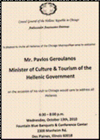 Στο Σικάγο, θα μιλήσει και σε ”όλους τους ‘Ελληνες” σε συγκέντρωση-δεξίωση του γενικού προξενείου, 13 Oκτωβρίου 2010, γιά να μάθουν κι αυτοί γιά την…Ελλάδα και τον… τουρισμό της. Δεν μάθαμε αν θα τον συνοδεύει πολυμελής αντιπροσωπεία και οι ”ωραίες” του γραφείου του. Και γιά όσους κακόβουλους επικρίνουν τον GAP γιά την φράση του ”λεφτά υπάρχουν”, οι ταξιδιάρηδες υπουργοί του, αποδεικνύουν ότι ήταν σωστός. Είναι σημαντικό να πάει ο Μr. Geroulanos σε εκθέσεις μικρού ενδιαφέροντος και να μιλά στην… Ομογένεια. ‘Ετσι προωθείται ο…τουρισμός. Αν μάλιστα έχει κοντά του και τον… ΣΑΕάρχη ΗΠΑ, τότε θα ”γεμίσει” η Ελλάδα από τουρίστες… Λέγεται ότι θα συναντηθεί με τον δήμαρχο (του οποίου η θητεία λήγει στα τέλη του χρόνου) και τον διευθυντή Τουρισμού της πόλης. Μα γι’ αυτές τις συναντήσεις -που θα έπρεπε ήδη να είχε κάνει ο γεν. πρόξενος- ολόκληρο υπουργικό ταξίδι;…