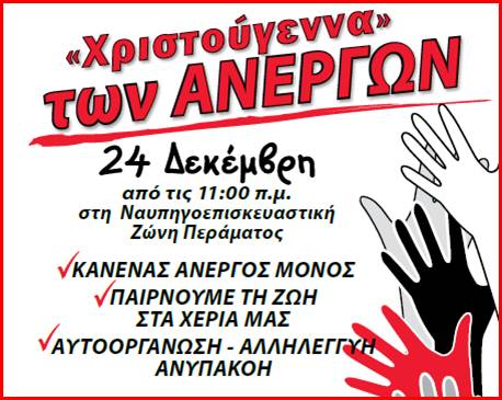 Άνεργοι, εργαζόμενοι, ντόπιοι και μετανάστες, ξεπερνώντας τις διαιρέσεις, τους ανταγωνισμούς και τον ατομική περιχαράκωση που μας κρατάνε καθηλωμένους, μπορούμε να κάνουμε ένα πρώτο βήμα για να αποφασίσουμε όλοι μαζί πώς θα δράσουμε, πώς μπορεί να δημιουργηθεί ένα ισχυρό κίνημα ανέργων με μαχητικότητα και προοπτική.