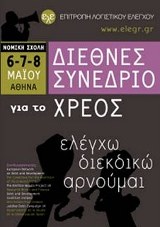 Την Παρασκευή 6 Μαΐου αρχίζει στη Νομική Σχολή της Αθήνας η Διεθνής Συνάντηση για το χρέος, η οποία θα διαρκέσει μέχρι και την Κυριακή 8 Μαΐου. Στη συνάντηση θα λάβουν μέρος πολιτικές προσωπικότητες, πανεπιστημιακοί, ειδικοί επιστήμονες, μέλη Επιτροπών Λογιστικού Ελέγχου του Χρέους και κινημάτων κατά του χρέους από την Ελλάδα, την Ευρώπη, τη Λατινική Αμερική, την Αφρική και την Ασία. Με το παρόν δελτίο παρουσιάζουμε το πλήρες Πρόγραμμα Εργασιών. Οι εργασίες της συνάντησης θα μεταδοθούν online μέσω του site www.elegr.gr