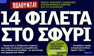 Χαρακτηριστικά σημερινά δημοσιεύματα «Εννιά υπουργοί «εργάστηκαν πυρετωδώς και αποφάσισαν γενική εκποίηση την μέρα της απεργίας» γράφει η μια φυλλάδα για να συμπληρώσει η άλλη με το φιλοκυβερνητικό στίγμα: «Γιγάντιο πρόγραμμα αποκρατικοποιήσεων ύψους 7 δις ευρώ για τα επόμενα τρία χρόνια, αποφάσισε προχτές η διυπουργική Επιτροπή Αναδιαρθρώσεων και Αποκρατικοποιήσεων στο πλαίσιο εφαρμογής του επικαιροποιημένου Μνημονίου».