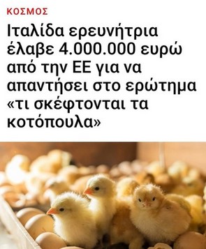 Γράφει ο mitsos175 Όλα τα έλυσαν στην ΕΕ κι ασχολούνται με τα πλέον σοβαρά.«Τι σκέφτονται τα… κοτόπουλα; Η Ιταλίδα ερευνήτρια