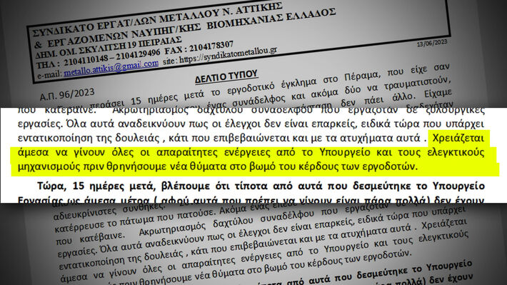 Πηγή: 902 Ούτε 24 ώρες δεν έχουν περάσει από την ανακοίνωση του Συνδικάτου Μετάλλου Αττικής και Ναυπηγικής Βιομηχανίας Ελλάδας που προειδοποιούσε ότι «χρειάζεται