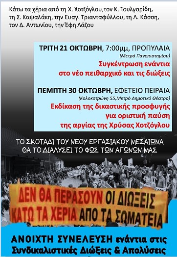 ΠΕΙΘΑΡΧΙΚΑ ΚΑΙ ΔΙΩΞΕΙΣ ΣΕ ΟΣΟΥΣ ΑΓΩΝΙΖΟΝΤΑΙ ΒΑΡΒΑΡΗ ΕΠΙΘΕΣΗ ΣΕ ΔΙΚΑΙΩΜΑΤΑ ΚΑΙ ΖΩΗ ΤΡΙΤΗ 21/10 ΣΥΓΚΕΝΤΡΩΣΗ ΕΝΑΝΤΙΑ ΣΤΟ ΝΕΟ ΠΕΙΘΑΡΧΙΚΟ ΣΤΟ