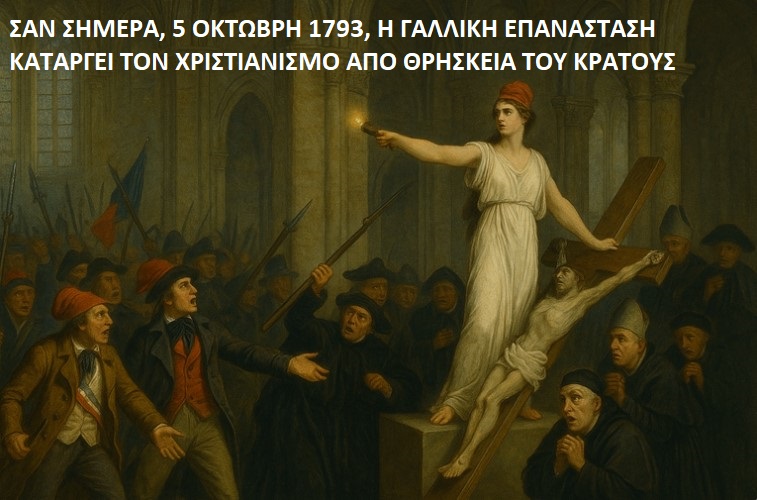 Στις 5 Οκτώβρη 1793, η Εθνοσυνέλευση στο Παρίσι κηρύσσει την κατάργηση του χριστιανισμού ως κρατικής θρησκείας. Ένα ιστορικό χτύπημα απέναντι