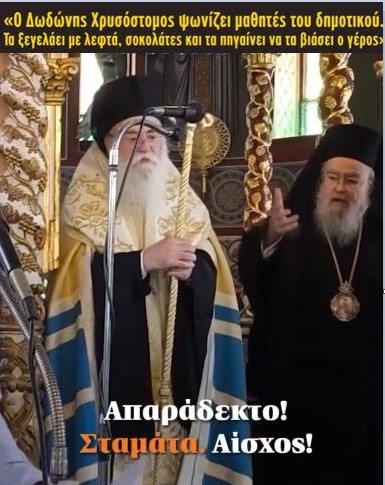 Η είδηση μας λέει ότι ο δεσπότης Δωδώνης, Χρυσόστομος, εξοργίστηκε και φέρθηκε με οργισμένο τρόπο στον διευθυντή του 1ου Δημοτικού