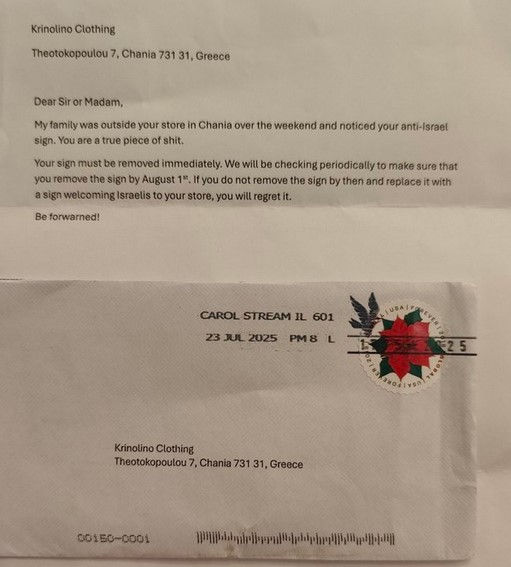 Μια ακόμη σοκαριστική υπόθεση εκφοβισμού και απειλών σε βάρος ανθρώπων που εκφράζουν την αλληλεγγύη τους στον παλαιστινιακό λαό ήρθε στο