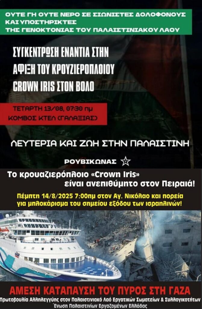 Το κρουαζιερόπλοιο Crown Iris, που μεταφέρει τουρίστες από το Ισραήλ -ανάμεσά τους και στρατιωτικούς που συμμετείχαν στις επιχειρήσεις κατά του