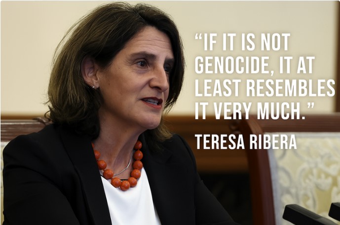 Η Τερέζα Ριμπέρα καταγγέλλει τις ισραηλινές θηριωδίες στη Γάζα Σε μία από τις πιο αιχμηρές δημόσιες παρεμβάσεις από επίσημο ευρωπαϊκό