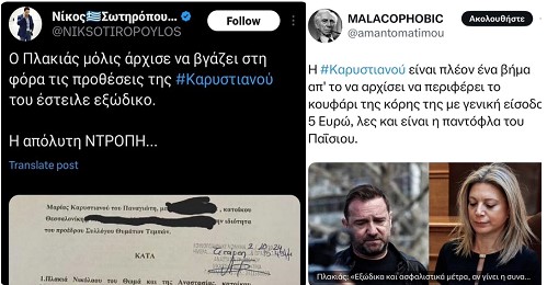Η πρόεδρος του Συλλόγου «Τέμπη 2023», Μαρία Καρυστιανού καταγγέλλει δημόσια τις κυβερνητικές μεθοδεύσεις τη «φίμωση» της ενημέρωσης για σημαντικές δίκες.