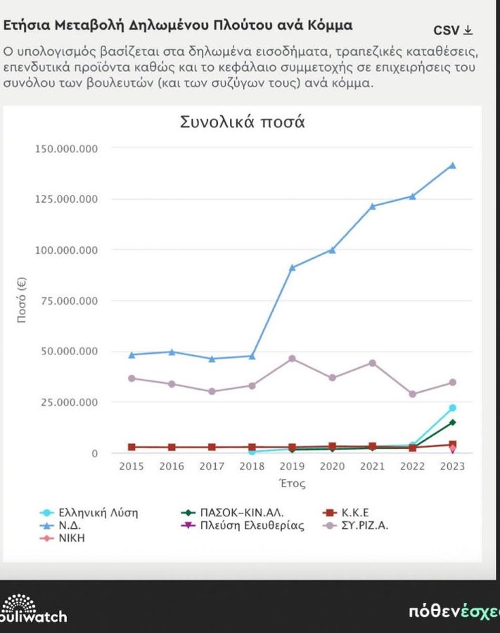 Από την επεξεργασία των δεδομένων του πόθεν έσχες που έκανε το καταπληκτικό vouliwatch αποδεικνύεται ότι η περιουσία των βουλευτών της