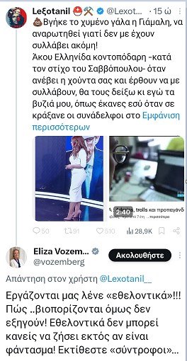 Αρχικά να θυμίσουμε το άγριο κράξιμο στο twitter που υπήρξε με αποδέκτη την ευρωβουλευτή της Νέας Δημοκρατίας, Ελίζα Βόζεμπεργκ για