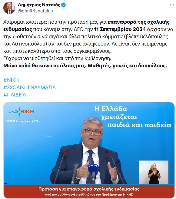 Τον σπόρο τον έσπειρε ο επικεφαλής του “κόμματος του Θεού” Δημήτρης Νατσιός, ζητώντας να επιστρέψει στα σχολεία η μαθητική στολή,