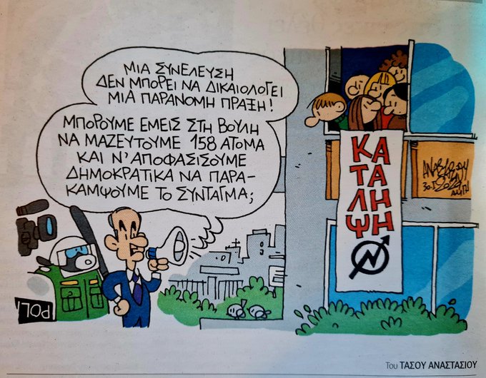 Από τα πιο εύστοχα σκίτσα αυτό του Τάσου Αθανασίου που δημοσιεύεται σήμερα στην “Αυγή”. Διαχρονικά, το αστικό πολιτικό σύστημα, όταν