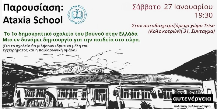Λάβαμε και παραθέτουμε: Η Αυτενέργεια σάς προσκαλεί σε μία δημόσια εκδήλωση-συζήτηση με την παρουσία μελών του “Ataxia School” – του