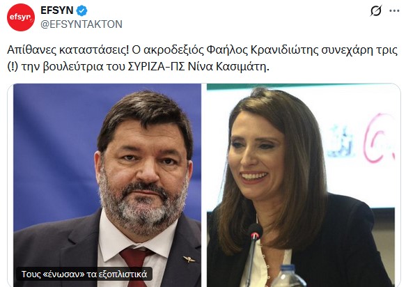 Διαβάζοντας το παραπάνω σχόλιο που υπάρχει στην σημερινή “Καθημερινή” και το οποίο μας ενημερώνει για τον “άτυπο αρραβώνα”, μεταξύ Ραγκούση