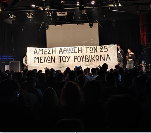 Τα πρώτα ψηφίσματα συμπαράστασης-αλληλεγγύης στα 25 μέλη του Ρουβίκωνα, που δικάζονται την Πέμπτη, 22 Μάη, για την παρέμβαση στην ταράτσα