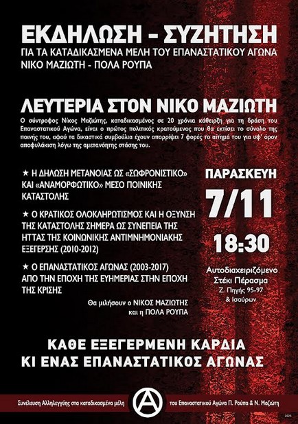 Την Παρασκευή 7/11 στις 18:30 στο Αυτοδιαχειριζόμενο Στέκι Πέρασμα (Ζωοδόχου Πηγής 95-97 & Ισαύρων στα Εξάρχεια) Το δικαστικό σύμπλεγμα εξουσίας