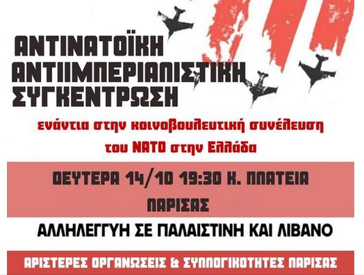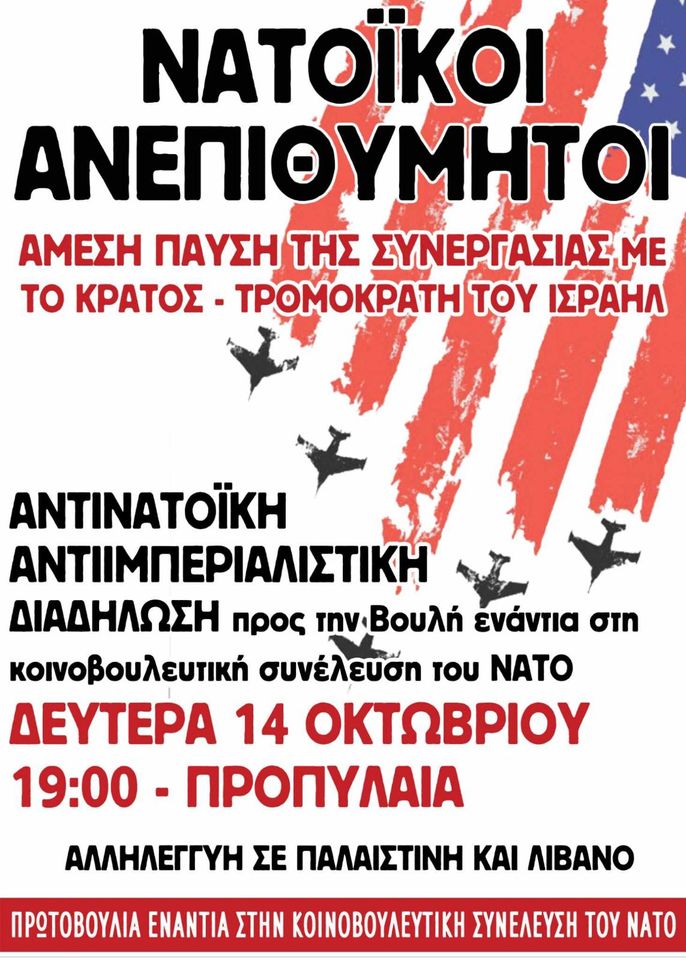 Λάβαμε και παραθέτουμε: Διαδηλώνουμε μαζικά και δυναμικά απέναντι στην Κοινοβουλευτική Συνέλευση του ΝΑΤΟ Αύριο Δευτέρα 14 Οκτωβρίου 80 Νατοϊκοί Βουλευτές