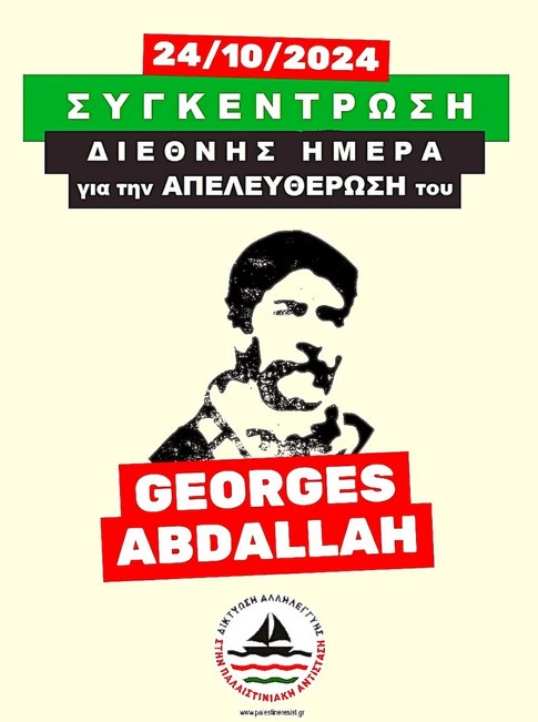 Kάλεσμα της Δικτύωσης Αλληλεγγύης στην Παλαιστινιακή Αντίσταση Στις 24 Οκτώβρη ο λιβανέζος κομμουνιστής Ζορζ Αμπνταλλά, μαχητής της Παλαιστινιακής Αντίστασης συμπληρώνει το