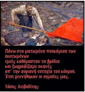 Γιατί δική μας πατρίδα είναι όλοι οι δρόμοι που στα πλάγια τους κοιμούνται οι σκοτωμένοι του αγώνα μας.. Τ. Λειβαδίτης Σαν σήμερα, το 1922 γεννήθηκε στην Αθήνα ο ποιητής και αγωνιστής Τάσος Λειβαδίτης. Ο Τ. Λειβαδίτης μαθητής Γυμνασίου ακόμα άρχισε να γράφει ποιήματα....