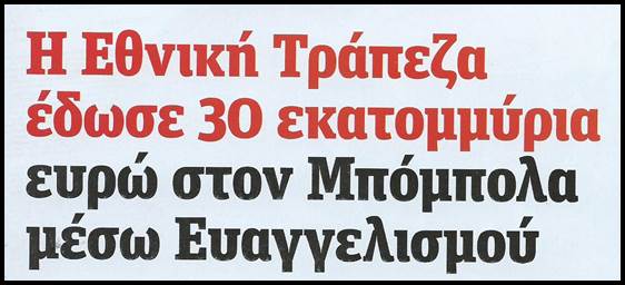 Τηρώντας τους κανόνες της Ευρωπαϊκής Ενωσης για την εταιρική κοινωνική ευθύνη η Εθνική Τράπεζα αποφάσισε το 2008 να ξεκινήσει χορηγία υπέρ του Δημοσίου και συγκεκριμένα για το νοσοκομείο «Ευαγγελισμός». Το ύψος της; 30.000.000 ευρώ. Το έργο; Η ανέγερση νέας πτέρυγας χειρουργείων. Ποιος πήρε τη δουλειά; Μα φυσικά η εταιρία ΑΚΤΩΡ, συμφερόντων Μπόμπολα. Για να εγκριθεί το έργο κατασκευής των νέων χειρουργείων έπρεπε να περάσει πρώτα από το Κεντρικό Συμβούλιο Νεωτέρων Μνημείων, το οποίο θα έκρινε εάν τα υπάρχοντα και προς κατεδάφιση κτίρια του νοσοκομείου είναι ή όχι διατηρητέα.