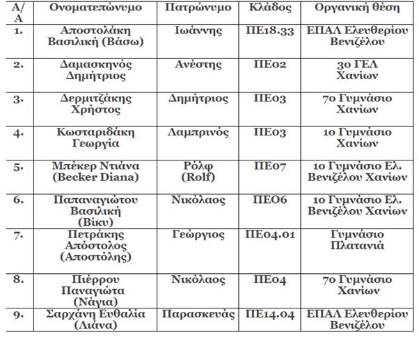 - τις συγχωνεύσεις-καταργήσεις τομέων και ειδικοτήτων (όπως συνέβη με τον Τομέα Οικονομίας και Διοίκησης στο 2ο ΕΠΑΛ Χανίων και το ΕΠΑΛ Ελευθερίου Βενιζέλου),