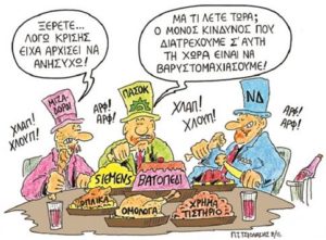 Πρόκειται για το περιλάλητο ελλαδικό πολιτικό σύστημα, το νοσηρό σύμπλεγμα που νέμεται αποκλειστικά την εξουσία μέσω της αρπαγής, της λεηλασίας και της ανομίας, επιδαψιλεύοντας στον εαυτό του αδιανόητα προνόμια και ασυλίες. Οι ίδιοι που έσυραν τη χώρα στην πτώχευση κι επέβαλαν το σημερινό καθεστώς οικονομικού προτεκτοράτου κι αποικίας χρέους.
