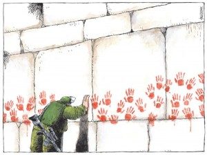 10 Απριλίου, δημοσιεύεται το σκίτσο του κρατούμενου που φέρει στο πέτο τη Λωρίδα της Γάζας στη θέση του κίτρινου αστεριού. Την ίδια μέρα δημοσιοποιείται βίντεο που καταγράφει ισραηλινό ελεύθερο σκοπευτή να πυροβολεί άοπλο Παλαιστίνιο, πανηγυρίζοντας για την «επιτυχία» του. 11 Απριλίου, την επομένη, δημοσιεύεται στην ΕΦ.ΣΥΝ. το σκίτσο του ελεύθερου σκοπευτή με τις ματωμένες παλάμες πάνω στο Τείχος των Δακρύων. Και τα δύο σκίτσα προκάλεσαν την αντίδραση της ισραηλινής πρεσβείας. Ως αποτέλεσμα, η εφημερίδα λαμβάνει προς δημοσίευση δύο επιστολές από την πρέσβη του Ισραήλ και μία επιστολή-άρθρο του δημοσιογράφου Βίκτωρος Ισαάκ Ελιέζερ.