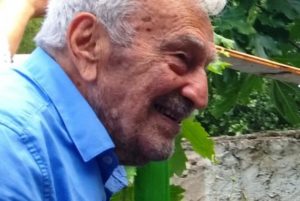 Μας δέχτηκε στον προσωπικό του χώρο παραδίπλα από το σπίτι του, στο «αμπρί» όπως το ονομάζει καθώς προσομοιάζει με το αμπρί του βουνού. Χώρος γεμάτος από μνήμες αγώνα, ξενιτιάς, δημιουργίας, αποτυπωμένες στους τοίχους, στις βιβλιοθήκες.