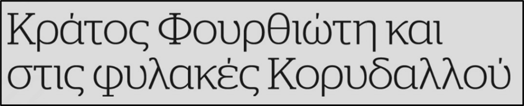 Σύμφωνα με αναφορά φρουρού των φυλακών Κορυδαλλού την οποία δημοσιεύει το Documento, τον περασμένο Νοέμβριο η διευθύντρια επιχείρησε να επιτρέψει την είσοδο Φουρθιώτη στις φυλακές Κορυδαλλού παρότι αυτή επιτρέπεται μόνο με έγγραφη άδεια του συμβουλίου της φυλακής. Είναι μια απόδειξη των προνομίων που απολαμβάνει ο υπόδικος παρουσιαστής επί κυβέρνησης Μητσοτάκη.