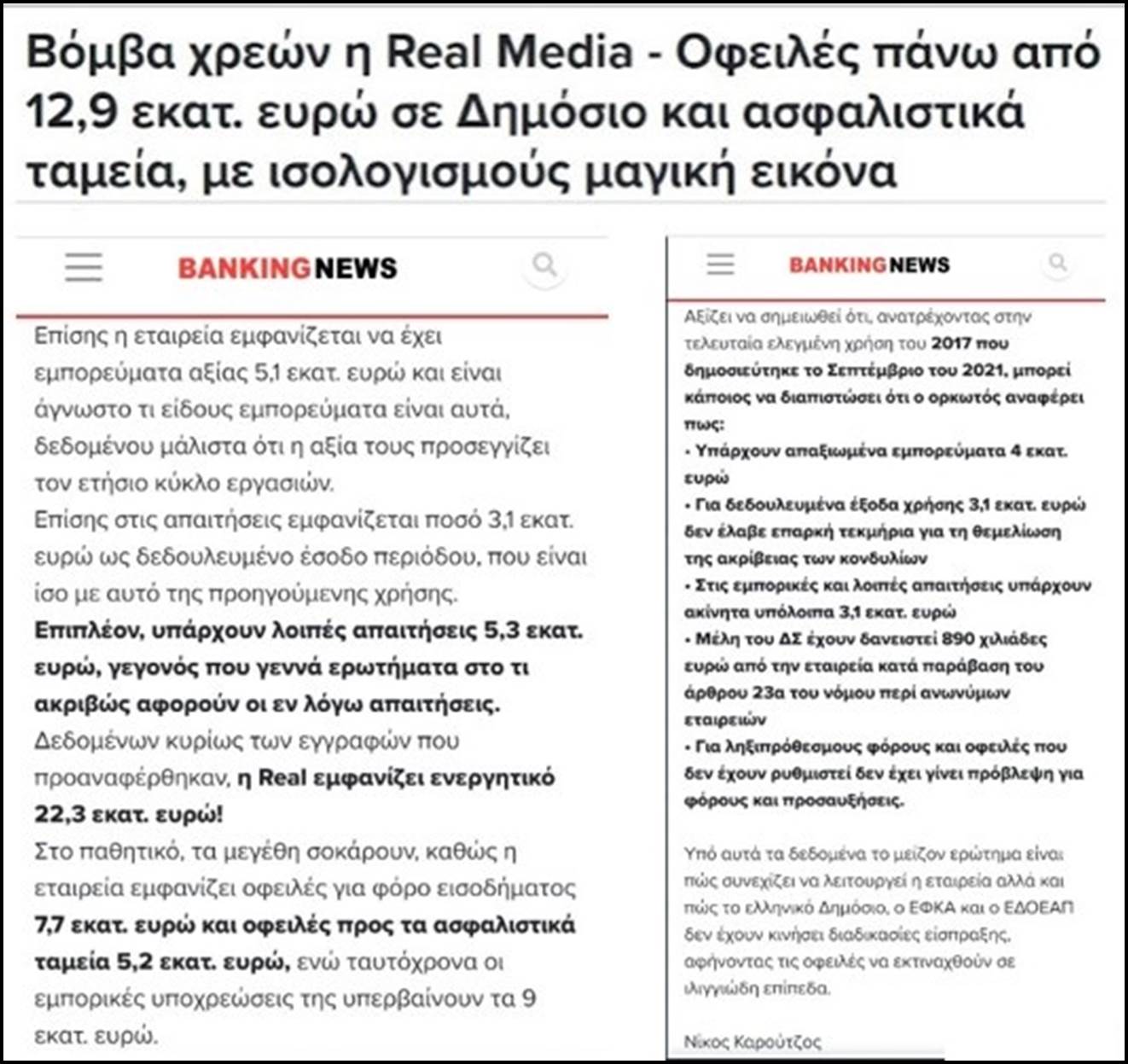 Τώρα, αν αυτή η εξέλιξη με τα δάνεια του Χατζηνικολάου έχει κάποια σχέση με τις δημοσιογραφικές επιδόσεις του, στις οποίες συμπεριλαμβάνονται και οι συνεντεύξεις που παίρνει απ’ τον πρωθυπουργό το αφήνουμε να το σχολιάσετε εσείς.