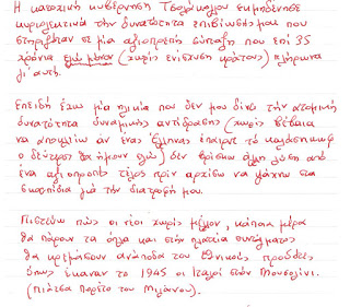 Υ .Γ. Το τελευταίο σημείωμα του αυτόχειρα-δολοφονηθέντος ηλικιωμένου μας το έστειλε η οικογένεια του και στην ανάρτησή μας στην οποία το παραθέσαμε γράφαμε: