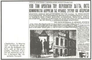 Σαν σήμερα 15/4/1931 πραγματοποιήθηκε η θρυλική απόδραση 7 κομμουνιστών –Ανδρόνικος Χαϊτάς (Γραμματέας της ΚΕ του ΚΚΕ), Κώστας Ευτυχιάδης ή Ηλιάδης (μέλος του ΠΓ), Μήτσος Παπαρήγας (μέλος του ΠΓ), Βασίλης Ασίκης (μέλος της ΚΕ), Ορφέας Οικονομίδης, Λευτέρης Αποστόλου και Περικλής Καρασκόγιας– από τις φυλακές Συγγρού όπου κρατούταν καταδικασμένοι βάση του «Ιδιώνυμου».