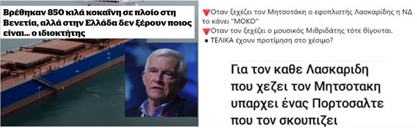 Σε σχέση πάντως με την “αφόδευση” που κάνουν οι πλουτοκράτες με “λεκάνη” το αστικό πολιτικό προσωπικό, αξίζει να θυμηθούμε ένα σπαρταριστό βιντεάκι του “προφήτή” μας, που αναφέρετε στον συγκεκριμένο εφοπλιστή, πλοίο του οποίου σήμερα εντοπίστηκε να διακινεί τεράστια ποσότητα κοκαΐνης.