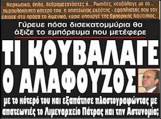 Φέραμε στην μνήμη μας από το απόσπασμα από την συνέντευξη που είχε δώσει ένας ιδιαίτερος καλλιτέχνης, καταπληκτικός άνθρωπος και υπέροχος σύντροφος, ο Χαϊνης, Δημήτρη Αποστολάκη, στην “Αυγή”, με αφορμή την είδηση για τον εντοπισμό 850 κιλών κοκαΐνης σε πλοίο συμφερόντων του εφοπλιστή Παναγιώτη Λασκαρίδη.